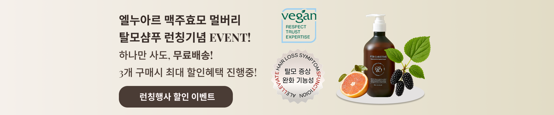 탈모샴푸 맥주효모 멀버리 약산성 두피 비건 탈모완화 자몽향 샴푸 엘누아르 500ml, 3개